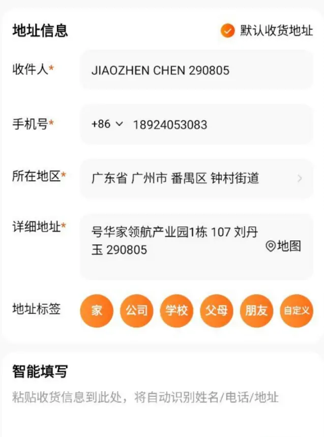 We enter the information from the city of Chin (the name of the recipient in the warehouse in China, his phone number, full address, and at the end the zip code) and save