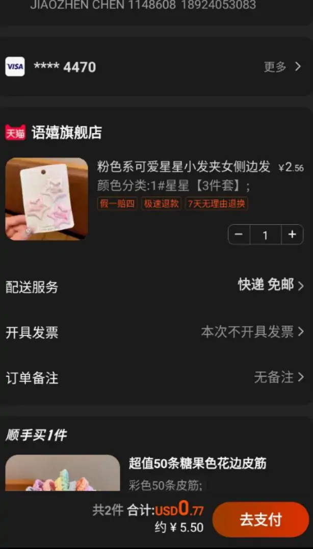 Now you need to check that everything is working and enter all the necessary information for further orders. It is advisable to do this to understand whether everything was successful or not. I recommend not to spare just 20-30 cents to make sure that everything works and that you did everything right. First, find the cheapest product. For example, I found these hair clips. We add them to the cart or immediately click on the checkout button, and we will be taken to the checkout. Here you need to enter the address of your warehouse in China, which was provided by your logistics company or other intermediary or delivery company, as well as your bank card for the order.